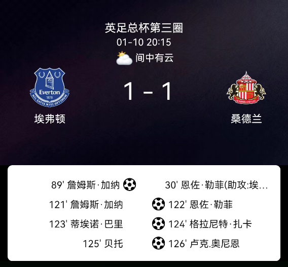 北京时间1月11日,2025-2026赛季英格兰足总杯第三轮,德比郡主场对阵利兹联。第33分钟皮罗埃丢点;第35分钟布里尔顿破门,1-0;第55分钟尼奥托破门,1-1;第59分钟田中碧破门,1-2;补时阶段贾斯廷破门,1-3;德比郡….....
