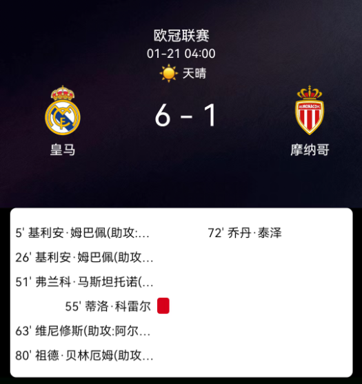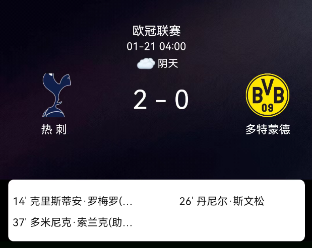 北京时间1月22日,欧洲冠军联赛联赛阶段第7轮,加拉塔萨雷主场对阵马德里竞技。第4分钟朱利亚诺-西蒙尼破门,0-1;第20分钟略伦特乌龙,1-1;两人染黄无红牌。最终比分,加拉塔萨雷1-1马德里竞技。关键事件第4分钟(….....