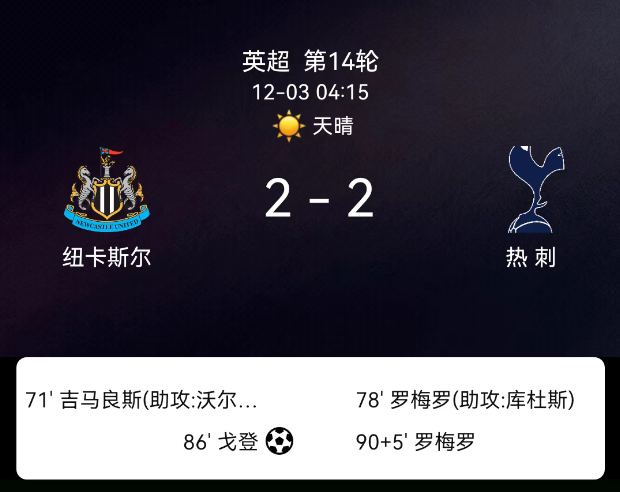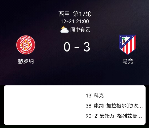 北京时间12月15日,2025赛季西班牙足球甲级联赛第16轮,阿拉维斯主场对阵皇家马德里。第24分钟姆巴佩内切破门,0-1;第68分钟比森特单刀扳平,1-1;第76分钟罗德里戈推射制胜,1-2;阿拉维斯2黄、皇马1黄;无红牌。最….....