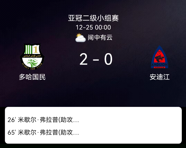 亚冠二级联赛第6轮弗拉普双响多哈国民20安集延