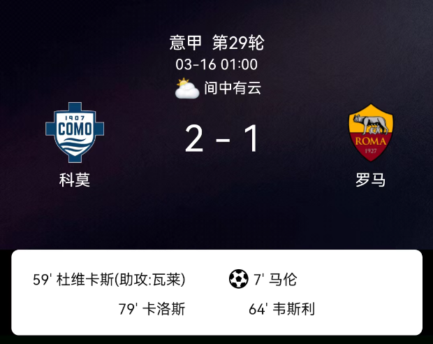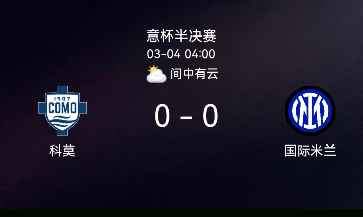 北京时间3月4日意大利杯半决赛首回合,科莫对阵国际米兰。全场无进球,双方无红黄牌。最终比分,科莫0-0国际米兰。关键事件全场无进球。红黄牌情况:全场两队均无红黄牌入账。.....
